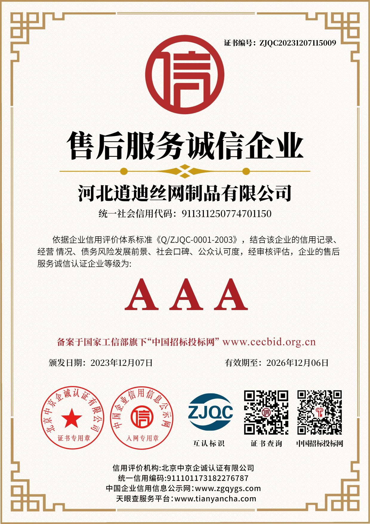 河北逍迪絲網(wǎng)制品有限公司誠信天下,誠信是我們公司一個(gè)原則問題不可撼動(dòng)的,以心中有誠信的思想結(jié)交五湖四海的朋友,能達(dá)到雙贏是最好的,我們堅(jiān)信朋友多了路好走,我們公司都是老朋友多,我們一直是這樣做的。河北逍迪絲網(wǎng)制品有限公司成立于2013年注冊資本壹仟伍佰萬整,主要生產(chǎn)沖孔網(wǎng),鋼格板,金屬防蟲網(wǎng),如實(shí)的實(shí)體廠家,是一家-研發(fā)-銷售-生產(chǎn)-安裝-售后一條龍公司,2019年通過了ISO 9001認(rèn)證管理體系符合GB/T 19001-2016/ISO 9001:2015標(biāo)準(zhǔn),同時(shí)通過了SGS認(rèn)證,擁有商標(biāo)版權(quán)2品牌,擁有一個(gè)著作版權(quán),河北逍迪絲網(wǎng)制品有限公司位于中國有名的(絲網(wǎng)之鄉(xiāng))安平縣,于天津,北京,雄安,石家莊相鄰,交通非常發(fā)達(dá),出口可以選擇天津港口非常近每天都有接貨送貨往返車輛,空運(yùn)可以選擇石家莊正定機(jī)場,附近也有鐵路運(yùn)輸,當(dāng)?shù)剡€有兩個(gè)生態(tài)物流園區(qū)發(fā)往全國各地,我們沖孔網(wǎng)工廠生產(chǎn)設(shè)備有:普通沖壓機(jī),高速?zèng)_壓機(jī),自主研發(fā)小微孔沖壓機(jī),龍門沖,磚塔沖孔,重型沖孔機(jī),萬瓦級(jí)別激光切割機(jī),3000W激光切割機(jī),焊接設(shè)備,折彎機(jī),校平機(jī),剪板機(jī),精密校平機(jī),(對(duì)板面平整度要求苛刻的客戶群體0.5-0.2誤差)我們公司銷售市場沒有局限性國內(nèi)國外都供應(yīng),擁有出口權(quán)...